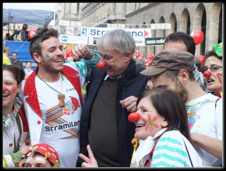 Viviamo In Positivo con il Sindaco di Milano Giuliano Pisapia che diventa un volontario con il naso rosso. Stramilano 2012 - Foto di Luca Cambré